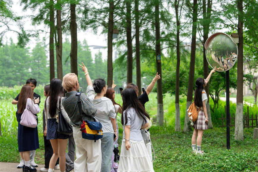 6月12日(ri),由嘉興市(shi)新(xin)聞傳(chuan)媒中(zhong)心主(zhu)辦(bàn)的(de)“江(jiang)南(nan)四季·村遊嘉興”大(da)學(xué)生(sheng)記者團(tuán)采風活動(dòng)走(zou)進(jin)烏鎮烏村。來自嘉興大(da)學(xué)、嘉興職業技(ji)術(shù)學(xué)院的(de)16名(míng)大(da)學(xué)生(sheng)記者先(xian)後(hou)到(dao)魚塘、桃林、射箭場(chang)、知青咖啡吧、磨坊、稻舍鄉(xiāng)村酒店(diàn)等(deng)遊覽點,深入了(le)解烏村的(de)農耕文(wén)化,并拍攝創意視頻。